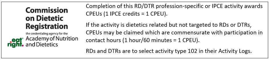 AMA PRA Category 1 Credits™ (2.00 hours), AMA PRA Non-Physician (Attendance) (2.00 hours), Dietetic CPEU (CDR) (2.00 hours), Implicit Bias (2.00 hours), Nursing CE (ANCC) (2.00 hours), Pharmacist CE (ACPE) (2.00 hours), Pharmacy Technician CE (ACPE) (2.00 hours), Social Work CE (ASWB) (2.00 hours)